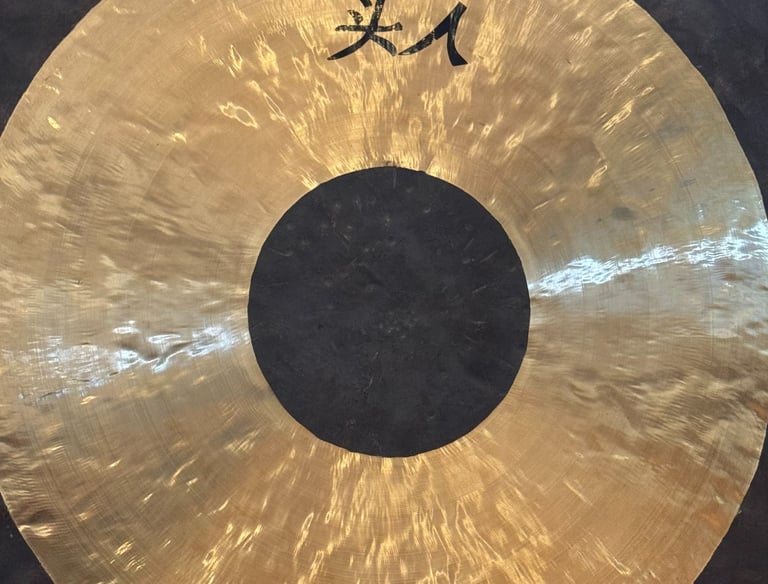 The gong produces sound waves that promote relaxation and mental clarity by reducing stress in the body and mind.